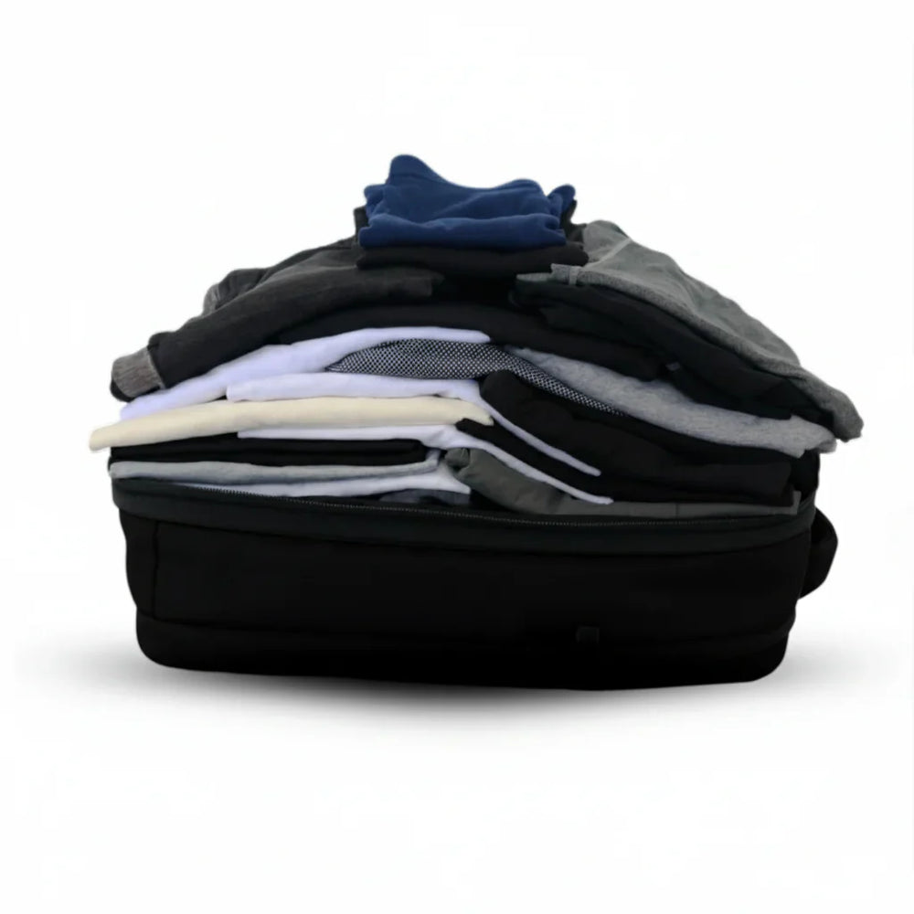 Fluxis Compact TravelPro creates extra packing space with built-in vacuum compression, removing excess air to reduce bulk and let you carry more without a larger bag.